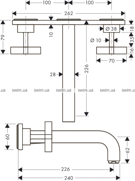 - Скрытая часть смесителя для раковины, на 3 отверстия, СМ (10303180)