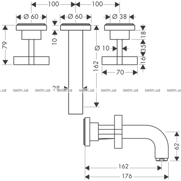 - Скрытая часть смесителя для раковины, на 3 отверстия, СМ (10303180)