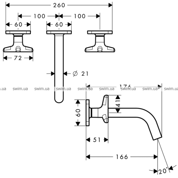 - Скрытая часть смесителя для раковины, на 3 отверстия, СМ (10303180)