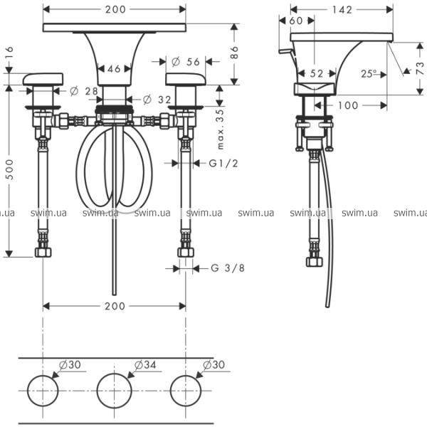 - Шланговое удлинение для смесителя на 3 отверстия (38959000)