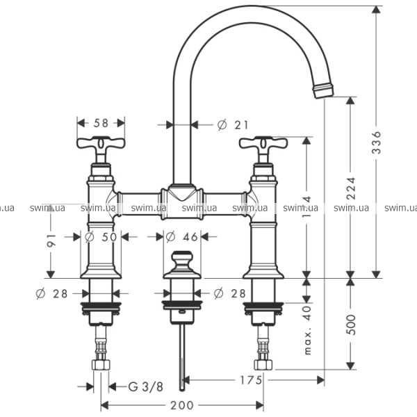- угол поворота излива 120°