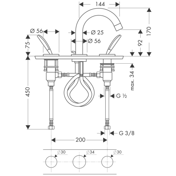 - Шланговое удлинение для смесителя на 3 отверстия (38959000)