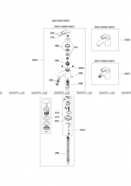 - Смеситель для умывальника с монтажным комплектoм для X-ChangeTM