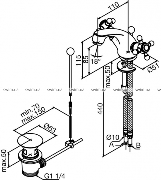- Излив: длина 110 мм, высота 85 мм
