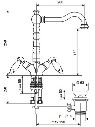 - Тип змішувача – двовентильний
