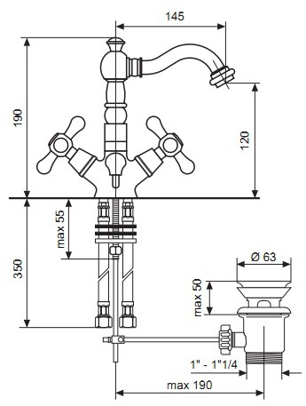 Змішувач для умивальника Emmevi Deco Old BR12615 з пробкою