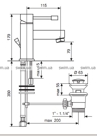 Змішувач для умивальника Emmevi Eden CR71003 з пробкою