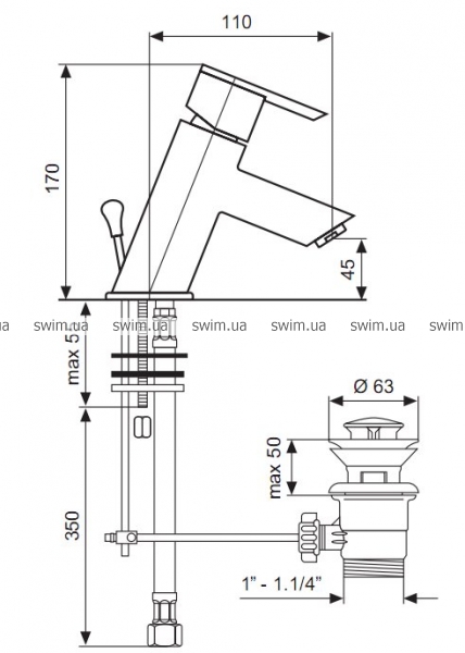 Змішувач для умивальника Emmevi Elly CR41003 з пробкою