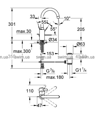 - поворотный, трубкообразный излив с
