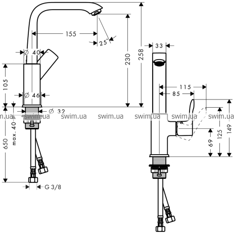 - поворотный излив 120°