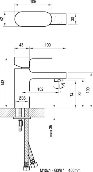 - Гибкие соединительные шланги длиной 360 мм, размер G3/8