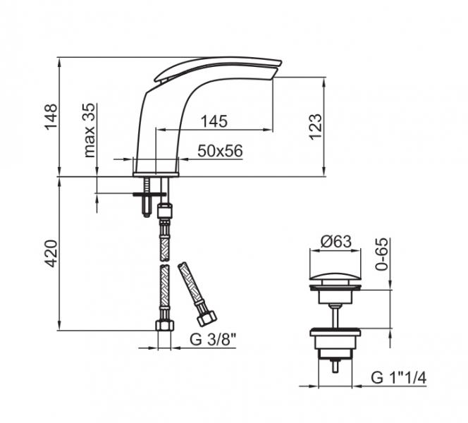 • Стандарт подводки: гибкая подводка стандарта 3/8"