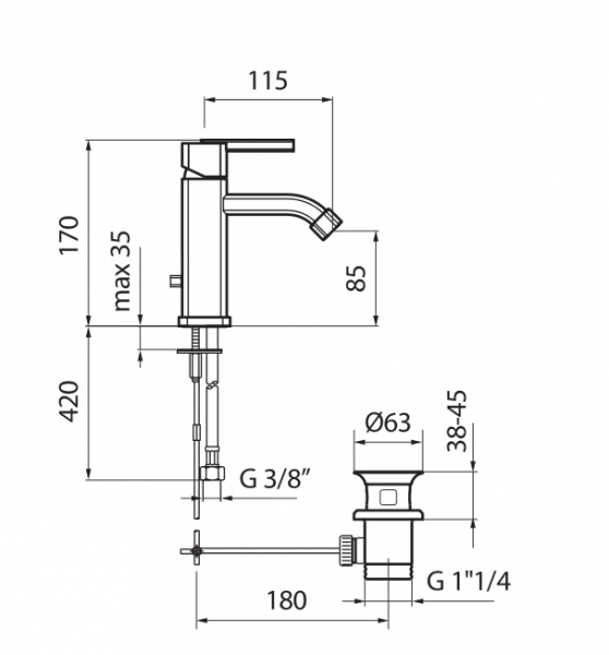 - Однорычажный смеситель для умывальника с дистанционным сливом