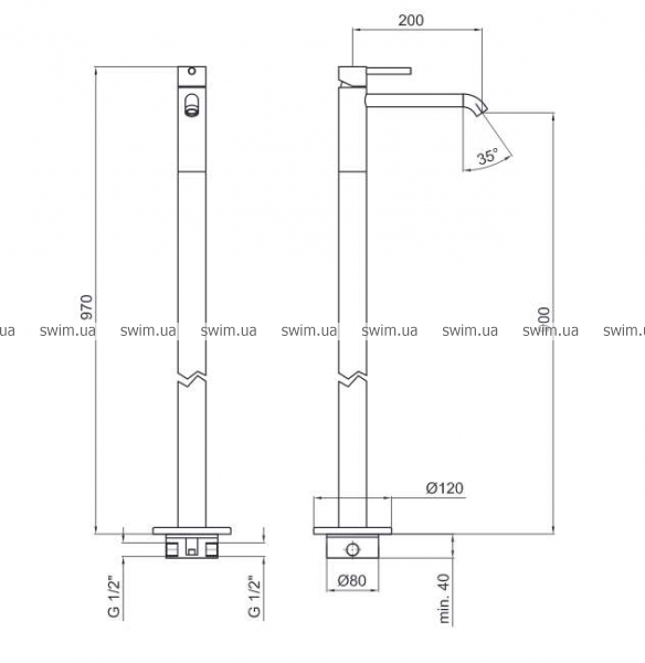 - Однорычажный смеситель для отдельно-стоящего умывальника