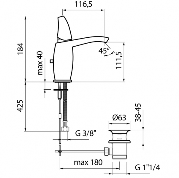 - Покрытие (цвет): хром/черная ручка, хром/глянцевая хромированная ручка