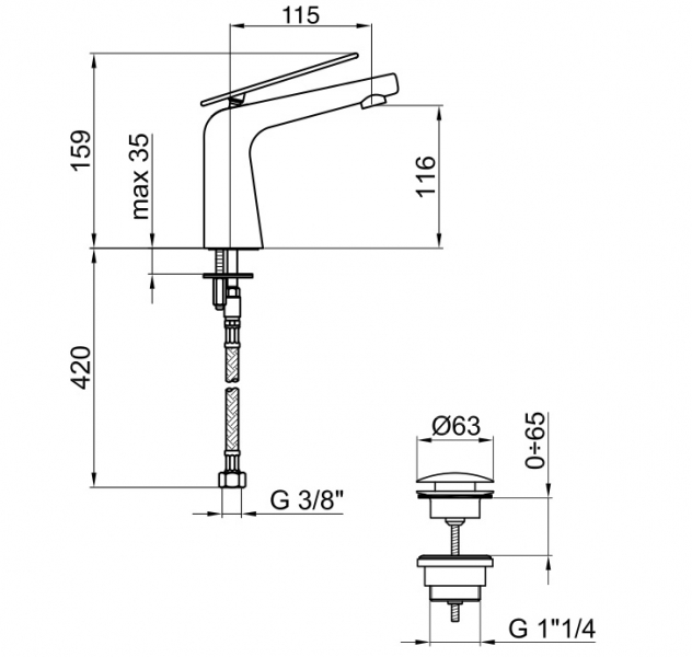 - Однорычажный смеситель для умывальника