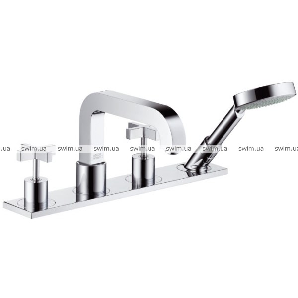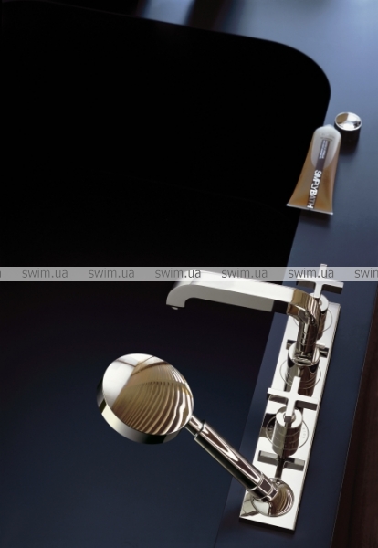 - комплект поставки: рукоятки, монтажная плита, излив на ванну с переключателем, защита от обратного тока воды
