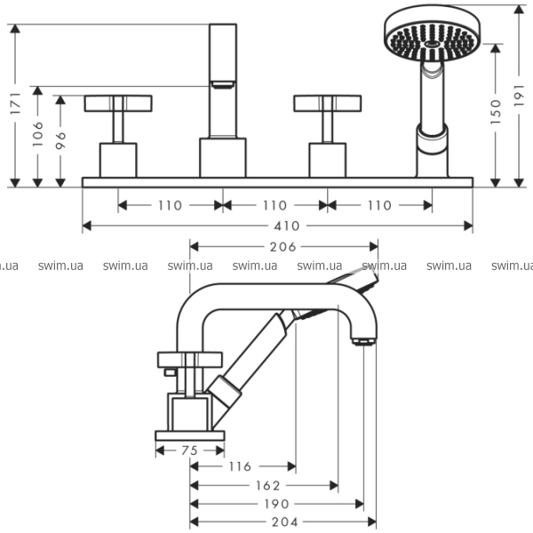 - максимальная длина ручного душа в вытянутом состоянии: 1,10 м