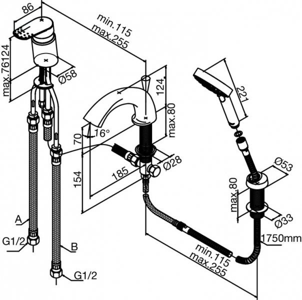 - Горизонтальний, на борт ванни