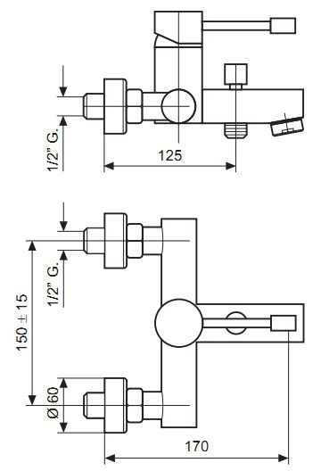 Змішувач для ванної марки Emmevi серії Eden оснащений картриджем з керамічними пластинами під один важіль змішування та регулювання холодної – гарячої води. У стандартну комплектацію входять – дві ексцентричні муфти для настінного монтажу, два декоративні відбивачі короткий фіксований вилив обладнаний аератором.