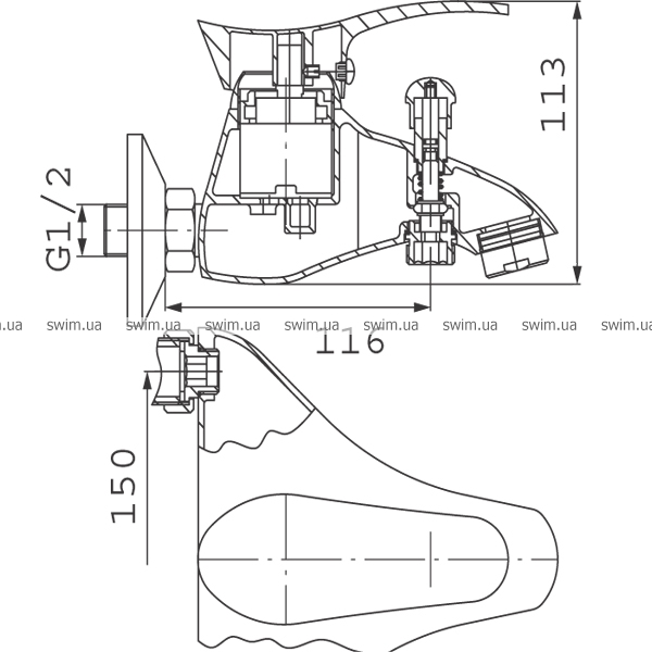 - Эксцентрика соединения G1/2 расстояние 150±20 мм