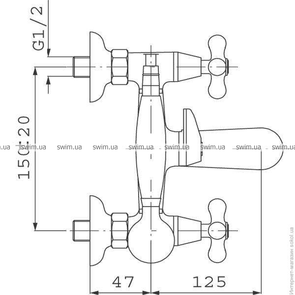 - Эксцентрика соединения G1/2 расстояние 150±20 мм