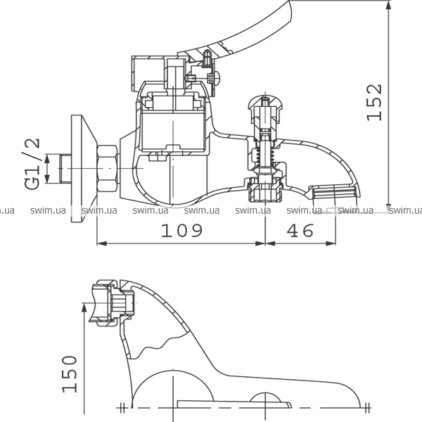 - Эксцентрика соединения G½ расстояние 150±20 мм