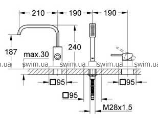 - Излив для ванны с автоматическим переключателем: ванна/душ