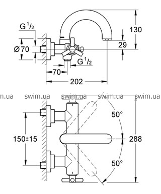 - Поворотный, трубкообразный излив с ограничителем поворота