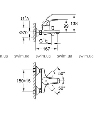 - Grohe BauCurve Однорычажный смеситель для ванны, DN 15