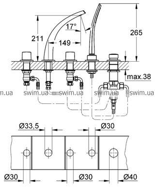 - GROHE Ondus® Комплект для ванны на 5 отверстий