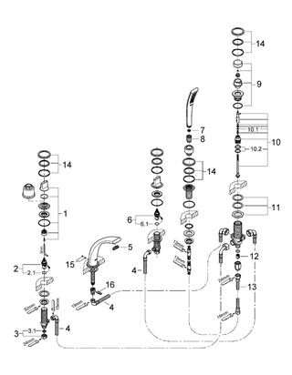 - GROHE Ondus® открытый излив, ламинарная струя рукоятки