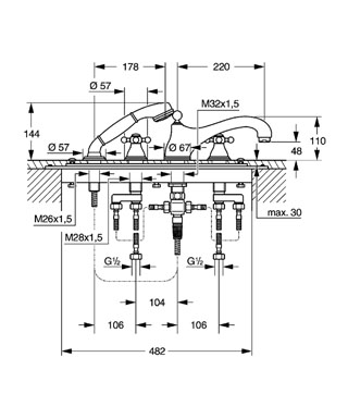 - Sinfonia Смеситель для ванны на 4 отверстия, DN 15