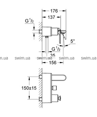 - Встроенный обратный клапан в душевом отводе 1/2"