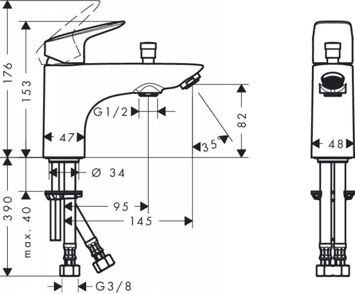 - вид соединения: соединительные шланги G ⅜