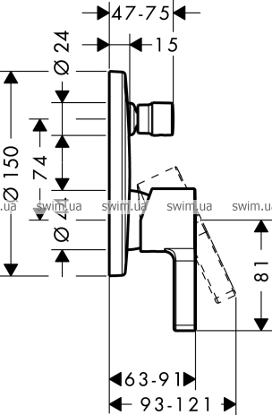 Смеситель для ванны Hansgrohe Metris Style 31465000