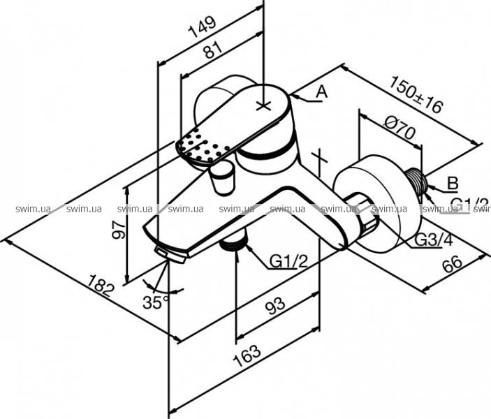 - Выход 1 / 2” на душевой шланг