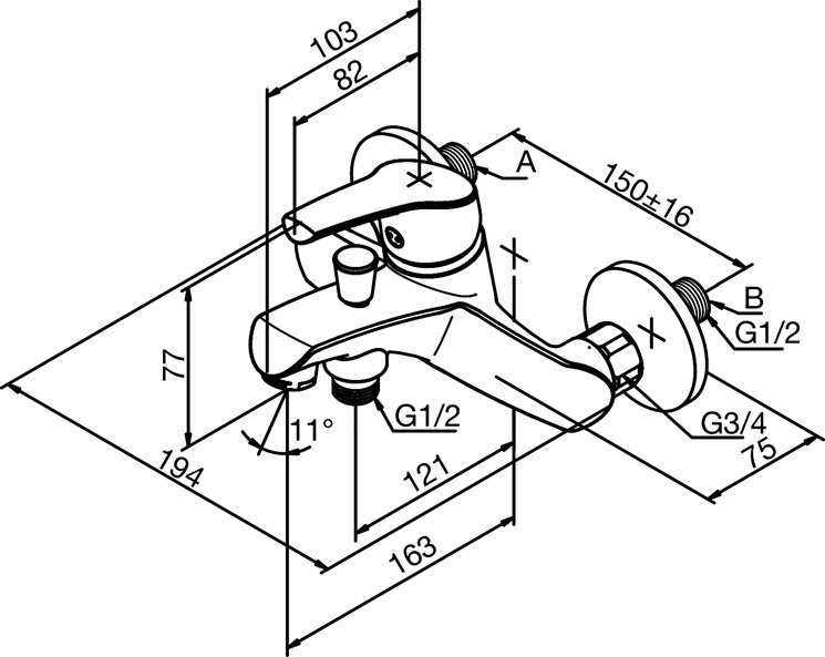 Смеситель для ванны и душа Damixa Rowan 671000000