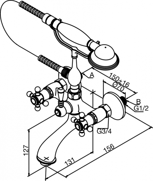 Смеситель для ванны и душа Damixa Tradition 370250000