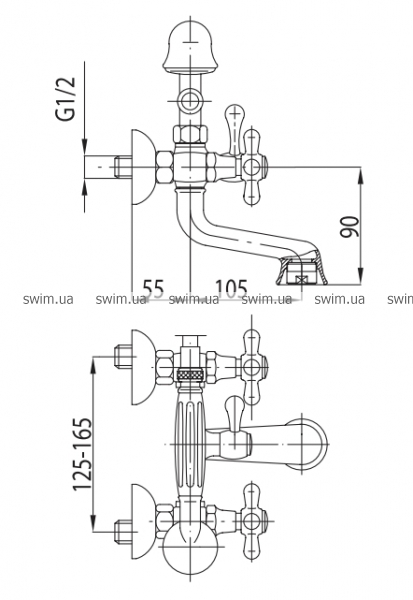 - Излив: длина 105 мм