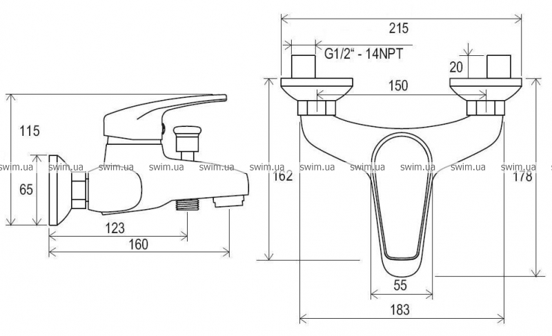 - Все настенные смесители Neo имеют межосевой размер 150 мм.