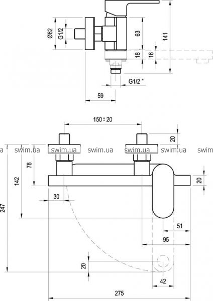 Смеситель для ванны настенный 150 мм CR 022.00/150