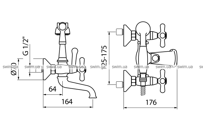 - Настенный смеситель для ванны