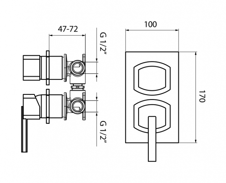 - Встраиваемый однорычажный настенный смеситель для ванны