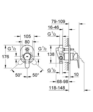- Grohe BauEdge Однорычажный смеситель для ванны/душа, DN 15