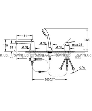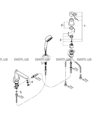 - Grohe BauLoop Однорычажный смеситель для ванны/душа на три отверстия