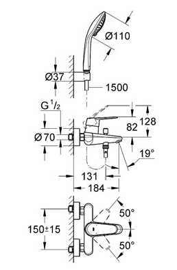 - встроенный обратный клапан в душевом отводе 1/2"