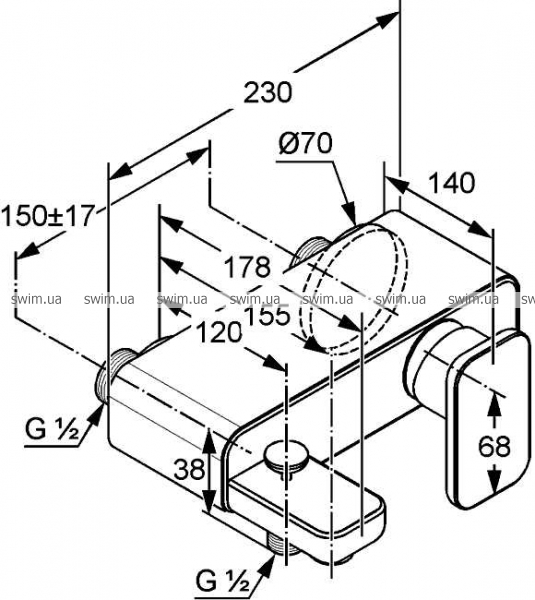 - Однорычажный смеситель для ванны и душа DN 15