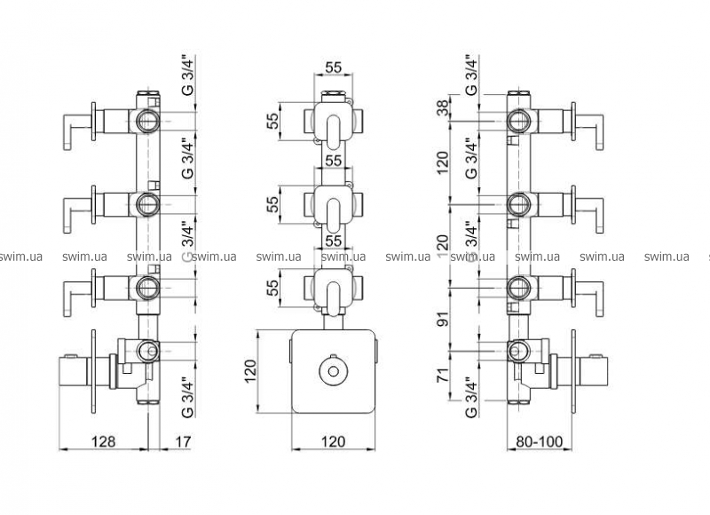 • Термостатический смеситель встраиваемого типа для ванны и душа