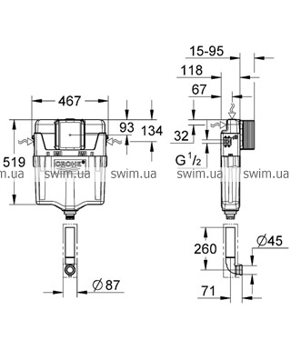 - Пневматический смывной клапан с тремя режимами слива: 2-х объёмный, старт/стоп, или непрерывный